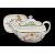 SWANSEA PORCELAIN TEAPOT & STAND circa 1815-1817, of rectangular form with a distinctive rectangular moulded knop and spurred moulded handle, copied from a Georgian silver prototype, painted in outline and hand coloured with the 'Parakeets in a Tree' pattern within a gilt dentil rim, Swansea script mark to base, 25cms handle to spout