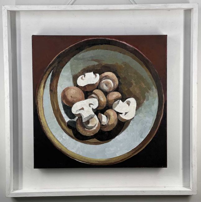 BRYN RICHARDS oil on canvas - still-life of mushrooms from the artist's 'Bowl Series'