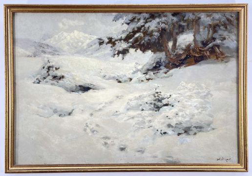 ALFRED OLIVER oil on board - snow in mountains, signed