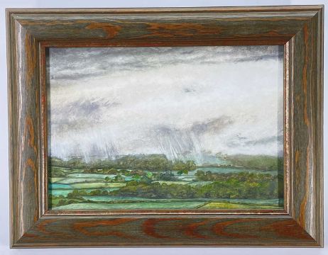 ALAN SALISBURY tempera on board - entitled verso 'Rain Across the Vale', signed with initials