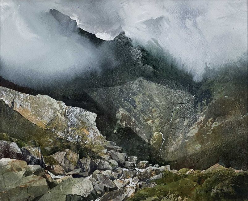 MALCOLM EDWARDS watercolour - mountain scene, entitled verso 'Esgair', signed
