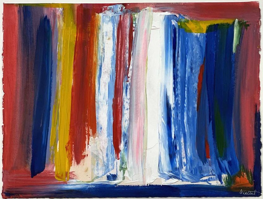 PRUDENCE WALTERS acrylic on paper - abstract, vertical stripes, entitled 'The Living Air', signed and dated 2003