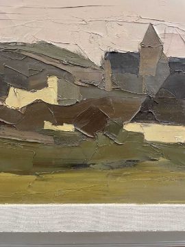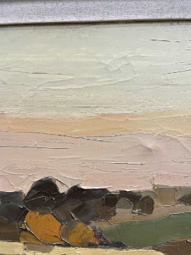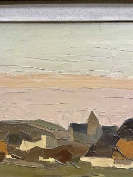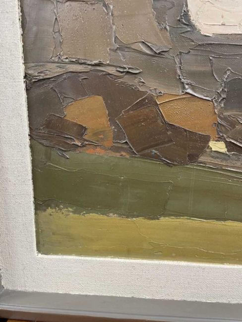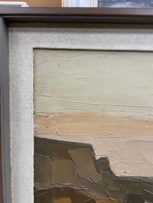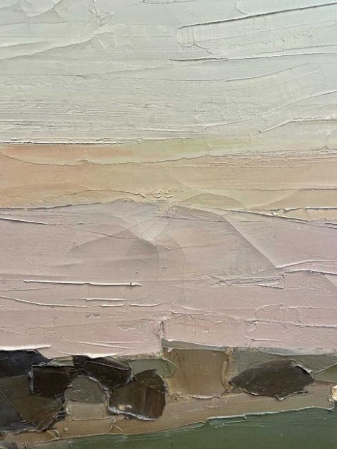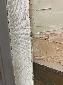 Paint cracks to thicker applicated areas in the sky, middle right, nothing serious.