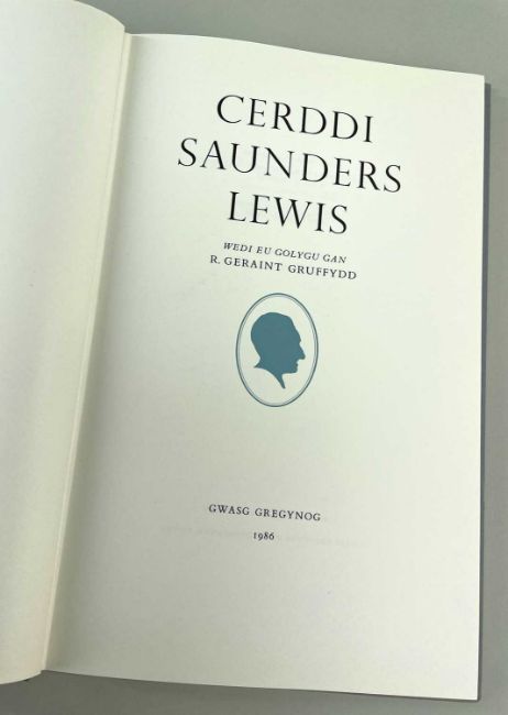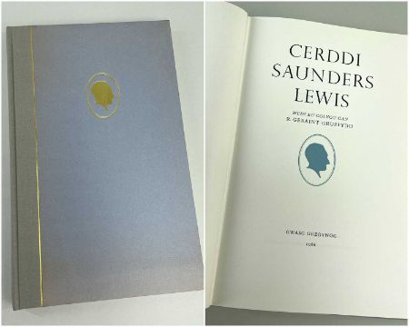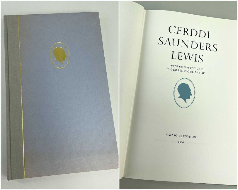 SAUNDERS LEWIS limited edition (324/450) Gregynog Press volume - 'Cerddi Saunders Lewis', dated 1986, in quarter grey cloth and light blue boards, title in gold to spine and with gold oval head portrait cameo of Saunders Lewis in profile to the cover