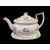 RARE NANTGARW PORCELAIN TEAPOT, COVER & STAND circa 1818-1820, of bellied rectangular form with overhanging rim, a distinctive rectangular knop and fin to the handle, copied from the Georgian silver prototype, formally decorated with a series of individual open pink roses on a bed of gilt foliage, knop, handle and borders gilt decorated, 25cms handle to spout