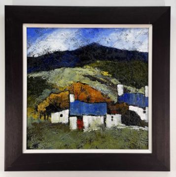 STEPHEN JOHN OWEN oil and mixed media on board - upland Welsh cottages, signed with initials