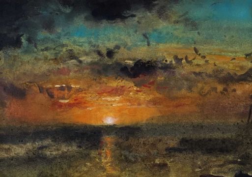 WILLIAM SELWYN watercolour - entitled verso 'Sunset', Albany Gallery label verso
