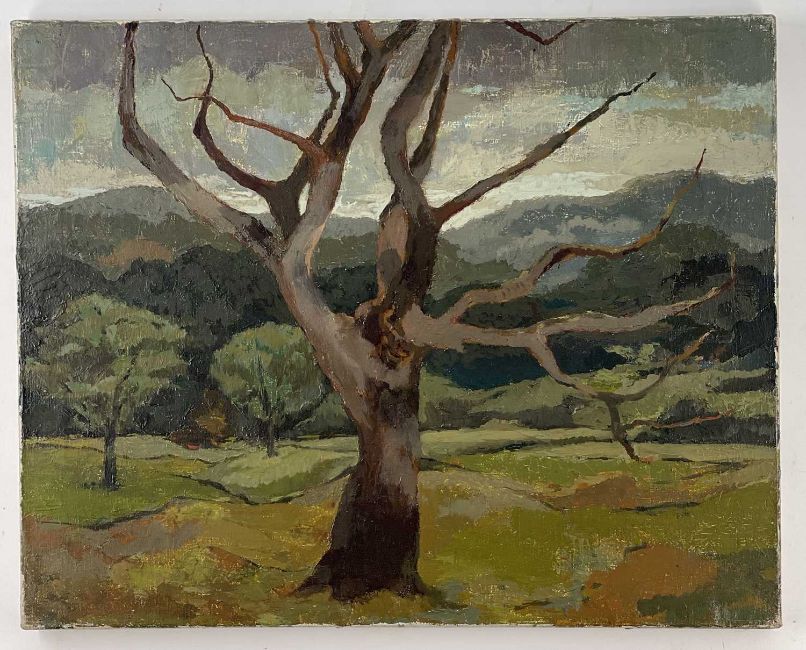 JOHN ELWYN oil on canvas - dead tree in woodland, unsigned