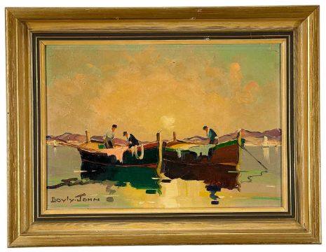 CECIL ROCHFORT D'OYLY JOHN oil on canvas - titled verso 'dawn fishermen off French coast at Cap d'Antibes', artist's label verso