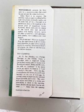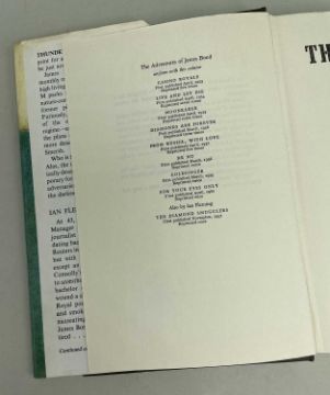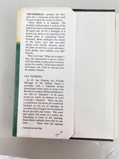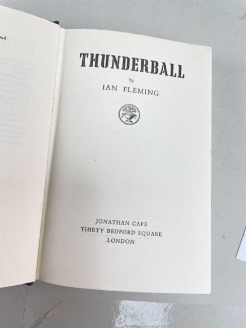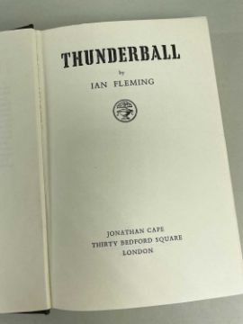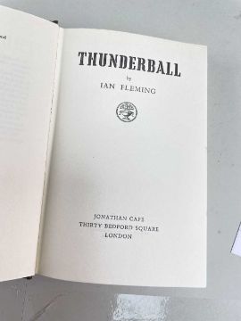 FLEMING (IAN) Thunderball, first edition, publisher's cloth, dust-jacket, 8vo, Jonathan Cape, [1961] Provenance:private collection Carmarthenshire, consigned via our Cardiff officeCondition Report:excellent, a fine copyNo inscriptionsDust cover looks good.There is some foxing to the page edges, only visible when the book is closed (see attached photos)No foxing on main pages. Looks clean.