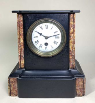 EARLY 20TH CENTURY BELGIAN SLATE & MARBLE MANTEL TIMEPIECE, 25.8cm high