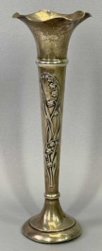 EMBOSSED TULIP VASE - 23cms tall (loaded), miscellaneous items including possibly Indian silver, Mappin & Webb and other EPNS, brass letter rack and a candleholder