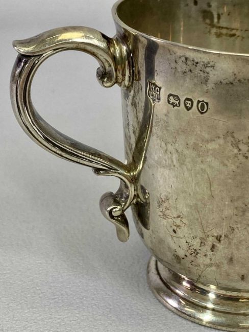 VICTORIAN SILVER CHRISTENING TANKARD - London 1889, Makers William Gibson & John Lawrence Langman, 4.1ozt, 7.5cms H, inscribed 'P A from Aunt Ursula'