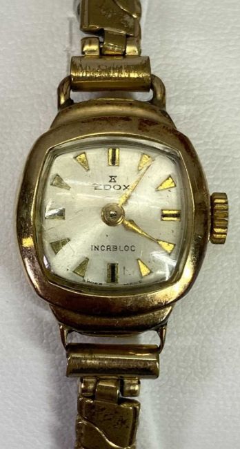 9CT GOLD CASED EDOX INCABLOC WRISTWATCH - on expanding metal bracelet, appears working when listed, 16mm case diameter