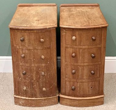 VINTAGE PINE BOW FRONTED BEDSIDE CABINETS, A PAIR - with false drawer front cupboard doors, 72cms H, 35cms W, 53cms D