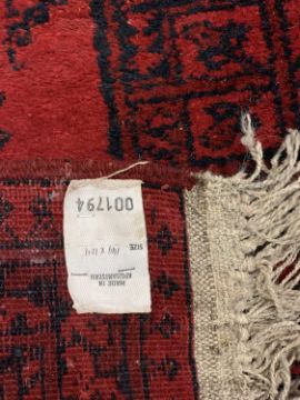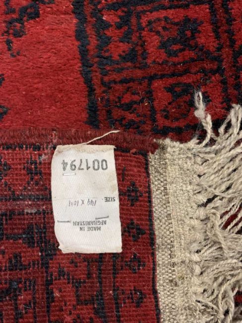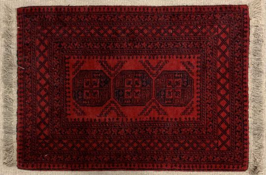 AFGHANISTAN RUG - red ground with multi border and central diamond motif, 147 x 106cms