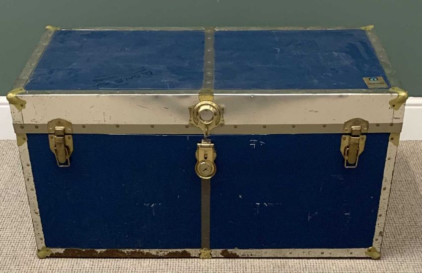 METAL SHIPPING TRUNK, 52cms H, 102cms W, 53cms D