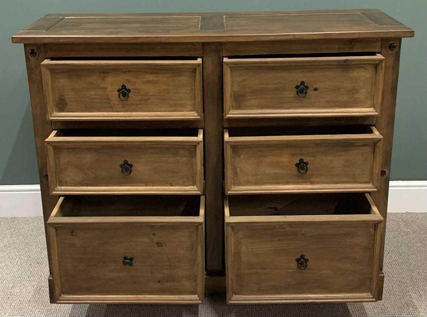 MODERN PINE CHEST of six drawers, 105cms H, 133cms W, 49cms D