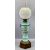 OIL LAMP - late 19th century oil lamp, opaque green glass stem and removeable reservoir, handpainted floral decoration, hexagonal wooden plinth, globular opaque white glass shade, 45.5cms high excluding shade.