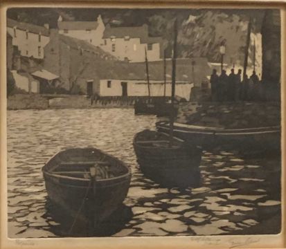 GRAHAME CLILVERD antique etchings (3) - harvesting scene titled 'Top of the Hill', 18 x 21.5cms, the second titled 'Polperro', 21 x 26cms and 'HMS Victory', 31 x 21cms