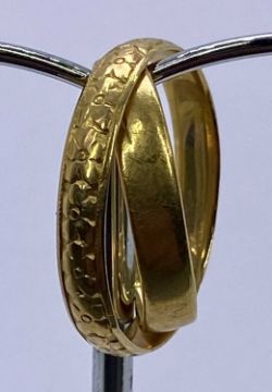 GOLD WEDDING BANDS 22ct (2) - one plain, Size L, one patterned, Size S, 2.8grms and 1.9grms