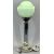 'EVER-HOT' CREAM CERAMIC & CHROME ART DECO 3 PIECE TEA SERVICE, an Art Deco table lamp with chrome column and green opaque glass shade, 48cms H, and an embossed copper powder flask, 20cms