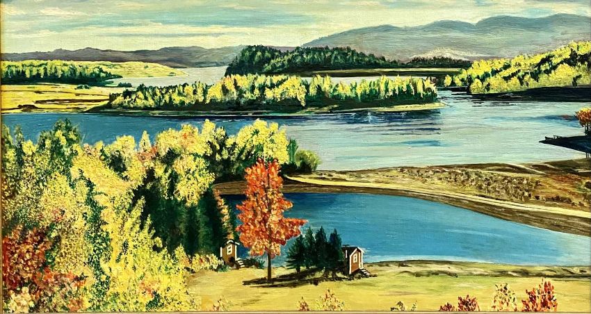 SIX VARIOUS FRAMED OIL PAINTINGS to include J E WILSON - windmill scene, 34 x 23cms, G PRITCHARD - Notre_Dame Du Laus, Quebec, Canada and Loch Tummel, Perthshire, both 23 x 43cms, two mountainscapes, 35 x 24cms and 32 x 24cms and unsigned - figure on a path, 34 x 44cms
