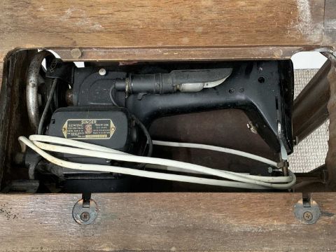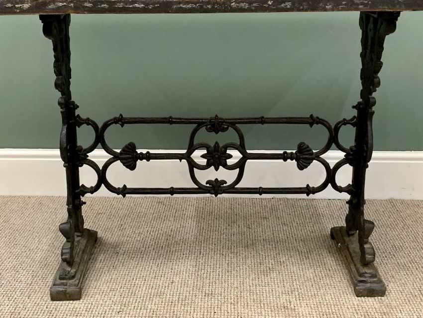 SINGER TREADLE SEWING MACHINE - 79cms H, 88cms W, 42cms D and a CAST IRON BASED WORK TABLE - 73cms H, 107cms W, 62cms D