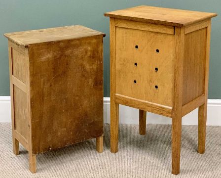 VINTAGE FURNITURE ASSORTMENT (3) - to include a circular copper top, oak based tripod table, 57cms H, 56cms diameter and two vintage bedside cabinets, one oak with single door, 76cms H, 46cms W, 35cms D (not including railback), one stripped pine with open shelf and lower single door, 66cms H, 44cms W, 28cms D