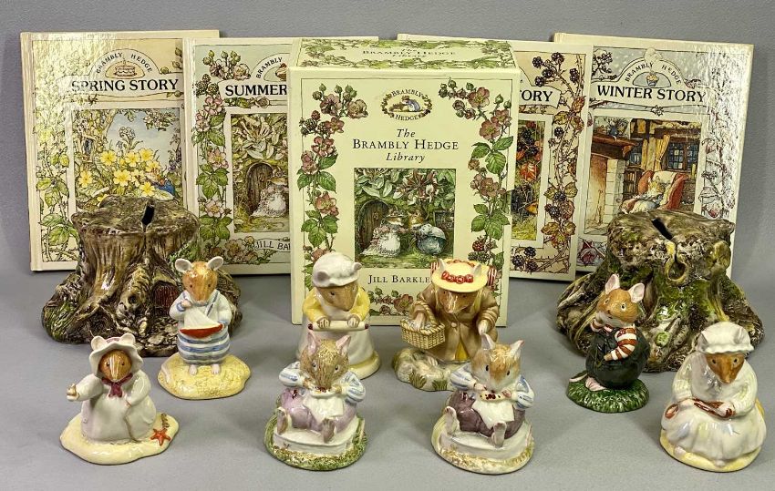 ROYAL DOULTON 'BRAMBLY HEDGE' GIFT COLLECTION - 8 x Jill Barklem animal figures, 2 x Store Stump money boxes and 12 x story books