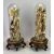 VICTORIAN GLASS DOMES, A PAIR - containing a pair of continental bisque figures of a boy and girl set amongst artificial and dried foliage on associated circular hardwood stands with scroll feet, each 50cms H