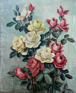 EDUARDO RODRIQUEZ SAMPER oil on canvas - Still Life of Roses, signed lower left, 49.5 x 59cms and E SCHURER oil on canvas - Still Life of Roses, signed lower left, 60 x 49cms