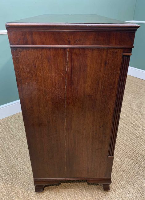 19TH CENTURY MAHOGANY FLAT FRONT CHEST, shallow frieze and fitted 2 short and 3 long drawers between reeded uprights, later feet, 120w x 55d x 114h cms (alterations)Comments: formerly the top of a tallboy chest.