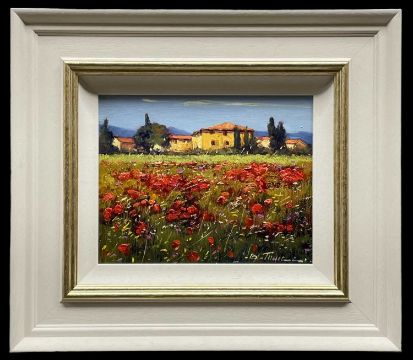 BRUNO TINUCCI (Italy born, b.1947) oil on canvas - Tuscan villa, entitled verso 'Campi Rossi', signed, 24 x 29cms