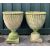 GARDEN ORNAMENTS: comprising pair composition stone shank fluted urns on socle bases, 66cm h (2)