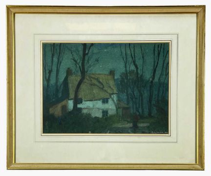 GEORGE CLAUSEN (British, 1852-1944) watercolour - whitewashed cottage with trees, signed and dated 1897, 25 x 35cms