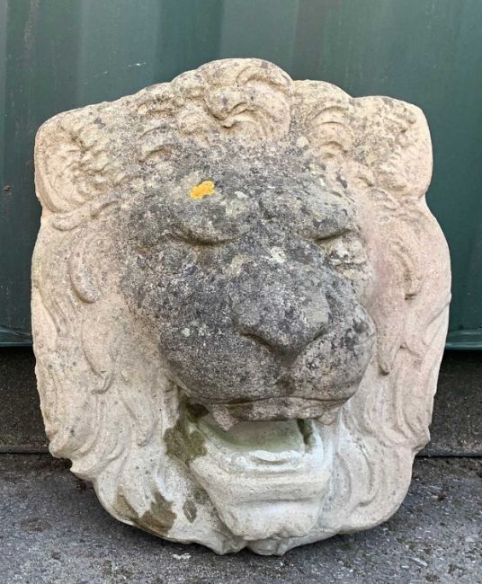 GARDEN ORNAMENTS: comprising pair composition stone lion masks, 47cm h (2)