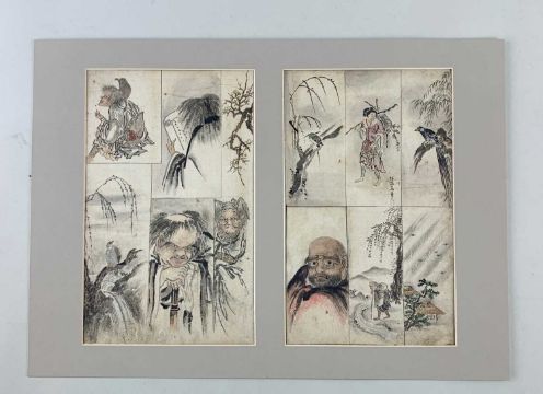 ASSORTED JAPANESE WOODBLOCK PRINTS, including KEISAI shikishiba of a prawn, HOKUSAI kacho-e of kingfishers, TOMINOBU oban yoko-e of slippers and of kimono on rack, four others of small figure and animal studies and a reproduction MASANOBU print (9)