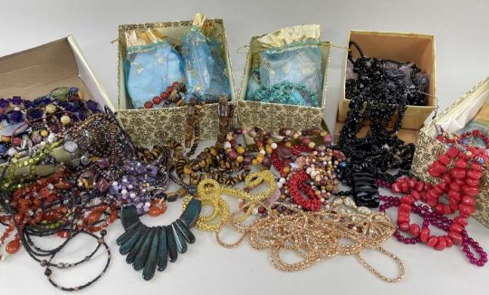ASSORTED MODERN COSTUME JEWELLERY, comprising mainly coloured bead necklaces and bracelets (qty)