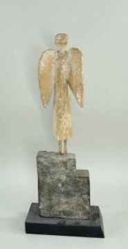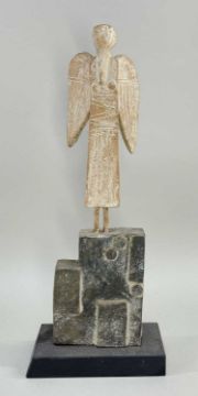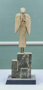 JOHN MALTBY (British, 1936-2020) stoneware sculpture - entitled to base 'Ascending Angel', signed, with impressed seal mark to bottom right side, 41cms high