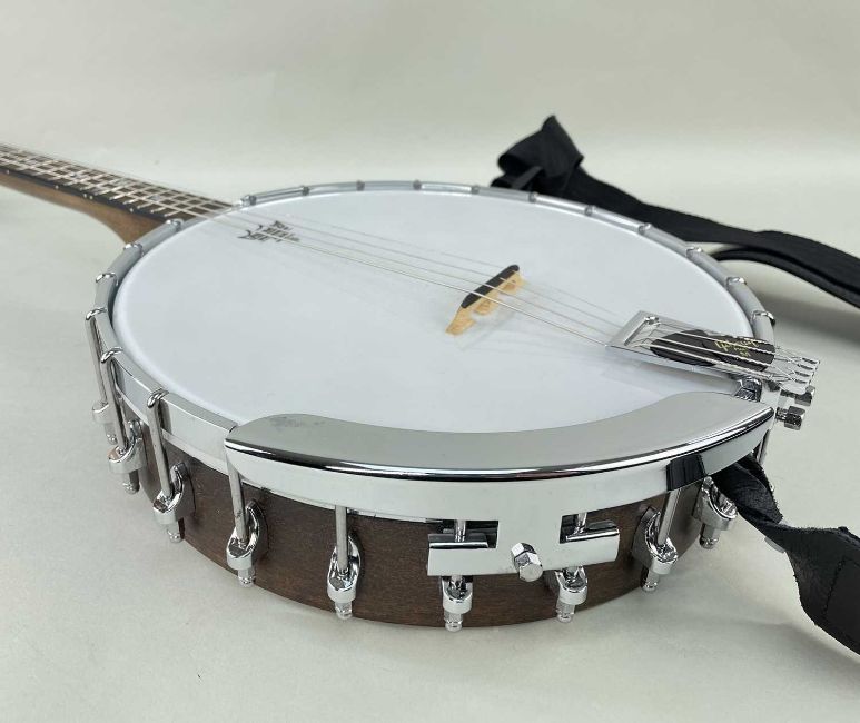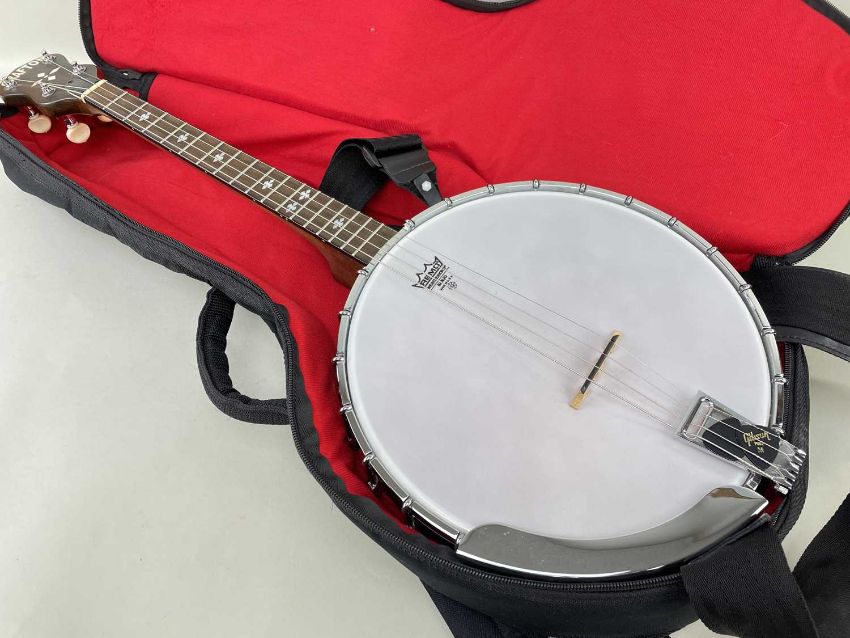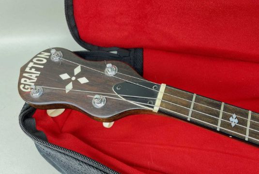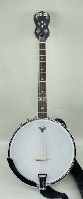 GRAFTON 'CLIPPER' ACOUSTIC BANJO, with white head, shoulder strap attached, comes in a soft caseComments: used but in very good condition