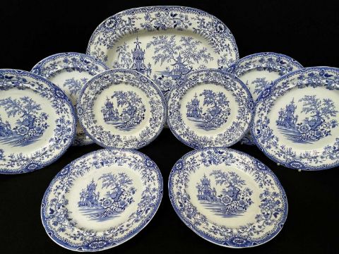 SOLD TO BENEFIT RJ & Co. 2023 CHARITY comprising various mid-century ceramic and glass figures, 19th century English ceramics including Staffordshire mug, Spode or Coalport oval fluted sucrier etc, assorted modern fashion cufflinks, seven White House Historical Association Christmas tree decorations, various Swansea blue and white platters, brass two-branch wall lights and candelabrum, pair of Laura Knight Coronation mugs, assorted Llanelly Colandine pattern pottery, Staffordshire 'Gaudy Welsh' tea service for twelve (some items damaged) ETC