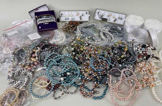 ASSORTED MODERN COSTUME JEWELLERY, comprising mainly coloured bead and simulated pearl necklaces, earrings, and bracelets (qty)