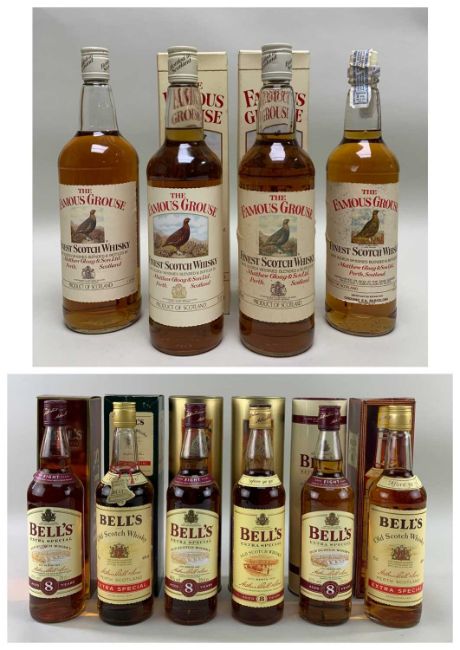 TEN BOTTLES OF BLENDED WHISKY comprising; four 70cl bottles of Bells 8yo 40%, two 75cl bottles of Bells 8yo 40%, three 75cl bottles of Famous Grouse 40% and one litre of Famous Grouse 40% (10)