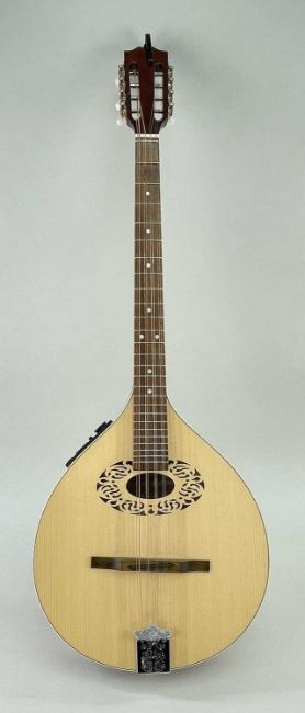 HORA OCTAVE ELECTRIC MANDOLIN, with cut out decoration around the sound hole, made in RomaniaComments: comes in soft case, used but in very good condition