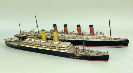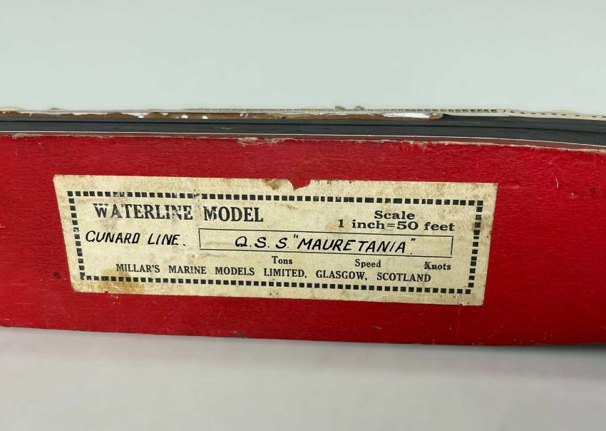 TWO WATERLINE 1in:50ft SCALE MODELS, comprising Q.S.S. 'Mauritania', 40cm, and Orient Line passenger ship 'Orford', 33cm, by Millar's Marine Models Ltd. (2)Provenance: The estate of Eileen Price McWilliam, Welsh opera singer and RWCMD tutor.Comments: both fair with losses, Orford lacks label.