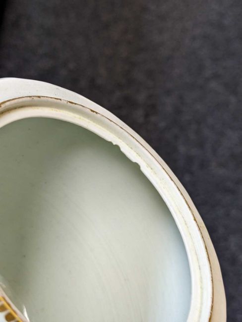 Comments: handle leaves and flowers possibly restored, inspection advised.
