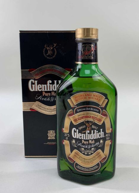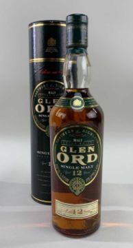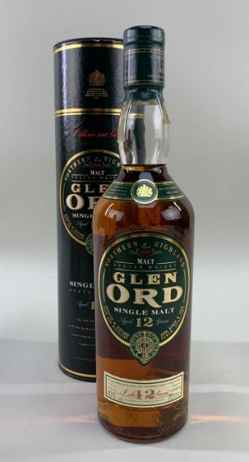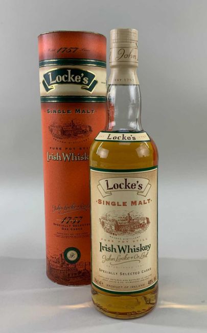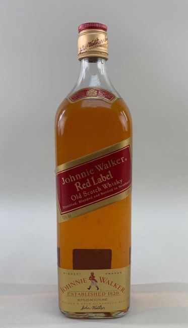 SIX BOTTLES OF MALT & BLENDED WHISKY comprising: one litre Johnnie Walker Red Label 43%, one litre of Ballantines 12yo 43%, one 26 & 2/3fl. oz bottle of Johnnie Walker Black Label 70° (indicating pre-1980's bottling), one 70cl bottle Glen Ord 12yo 40%, one 70cl bottle of Locke's Irish Single Malt 40% and one 37.5cl half bottle of Glenfiddich (6)