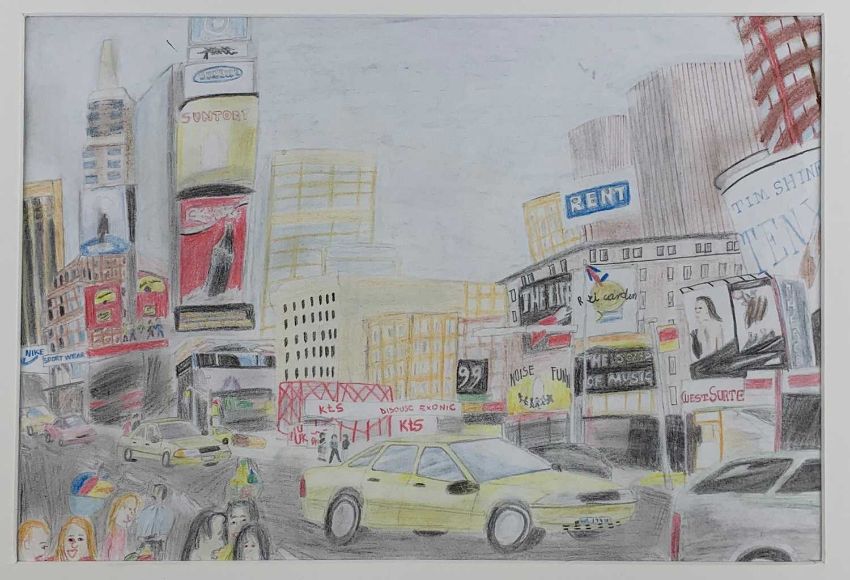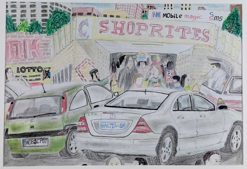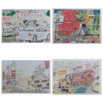 CONTEMPORARY SOUTH AFRICAN SCHOOL coloured pencil x 4 - busy street scenes with vehicles and pedestrians, all unsigned 30 x 42cms, 27 x 39cms, 22 x 30cms, 22 x 34cms (4)Comments: mounted but unframedProvenance: Estate of Prof. Ritchie Ovendale, Aberystwyth.