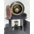 LARGE ONYX, SLATE & GILT METAL MOUNTED MANTEL CLOCK, c. 1890, mounted with gilt metal appliques, 4 3/4in. Arabic dial with visible Brocot escapement with cast bezel, 8-day French movement striking a bell with outside countwheel, twin flask mercury pendulum (loose) visible through bevelled glass window, between outset columns, on stepped base, case with classical gilt metal appliques and flame finials, 47.5cn hComments: chip to onyx at base of column, side onyx ornament reglued out of place. pendulum suspension lacks crosspin.